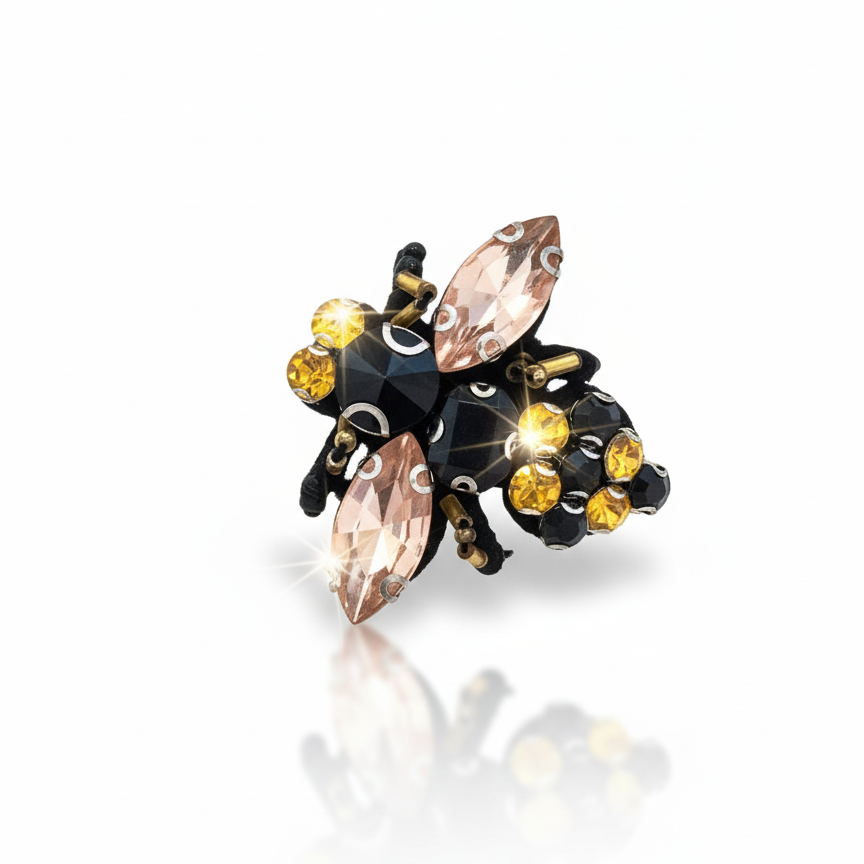 These buzzy bees have pink wings and are accented with either yellow or white gems.